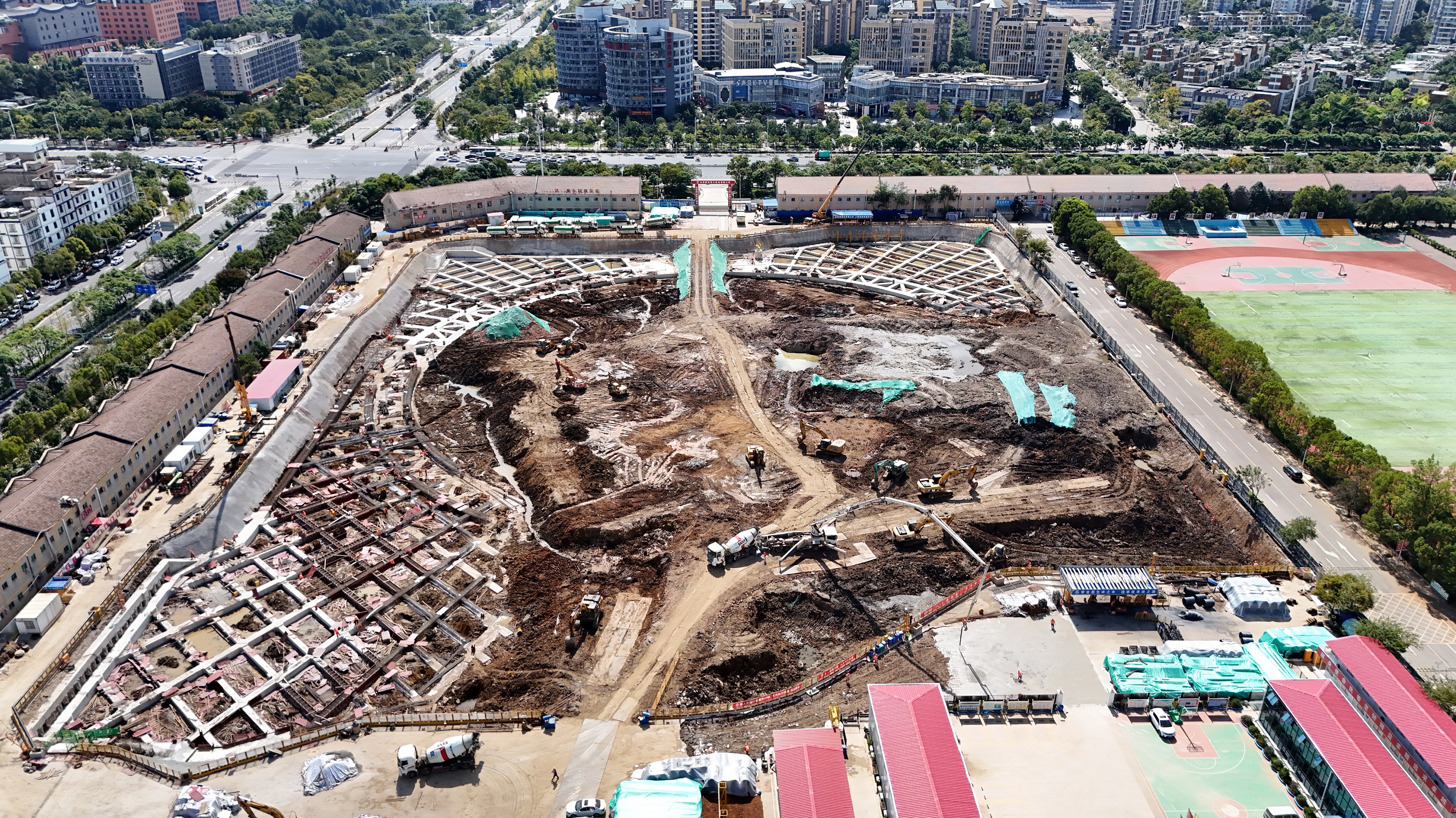 云南省婦幼保健院新院建設項目是云南省醫療系統重點建設項目,為確保早日完成建設投入使用,項目部絲毫不敢停歇,充分利用黃金施工期爭分奪秒搶抓進度,所有管理人員堅守崗位,進行混凝土澆筑、土方外運等施工,累計完成800人次作業。