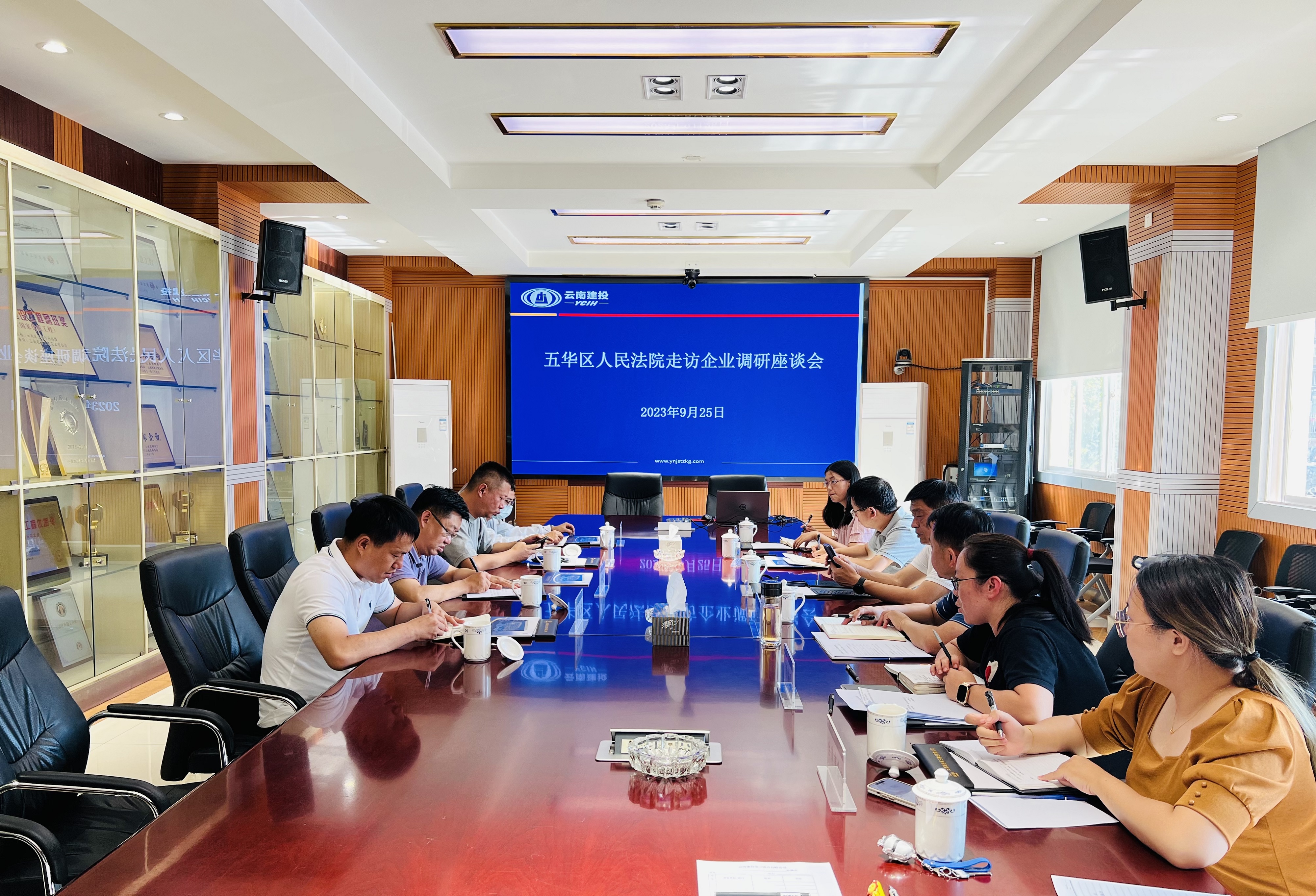 9月25日,昆明市五華區(qū)人民法院副院長武子捷一行到座談,與公司領導及法律事務部人員面對面交流,圍繞化糾紛、控風險、筑防線、促發(fā)展等進行深入探討。