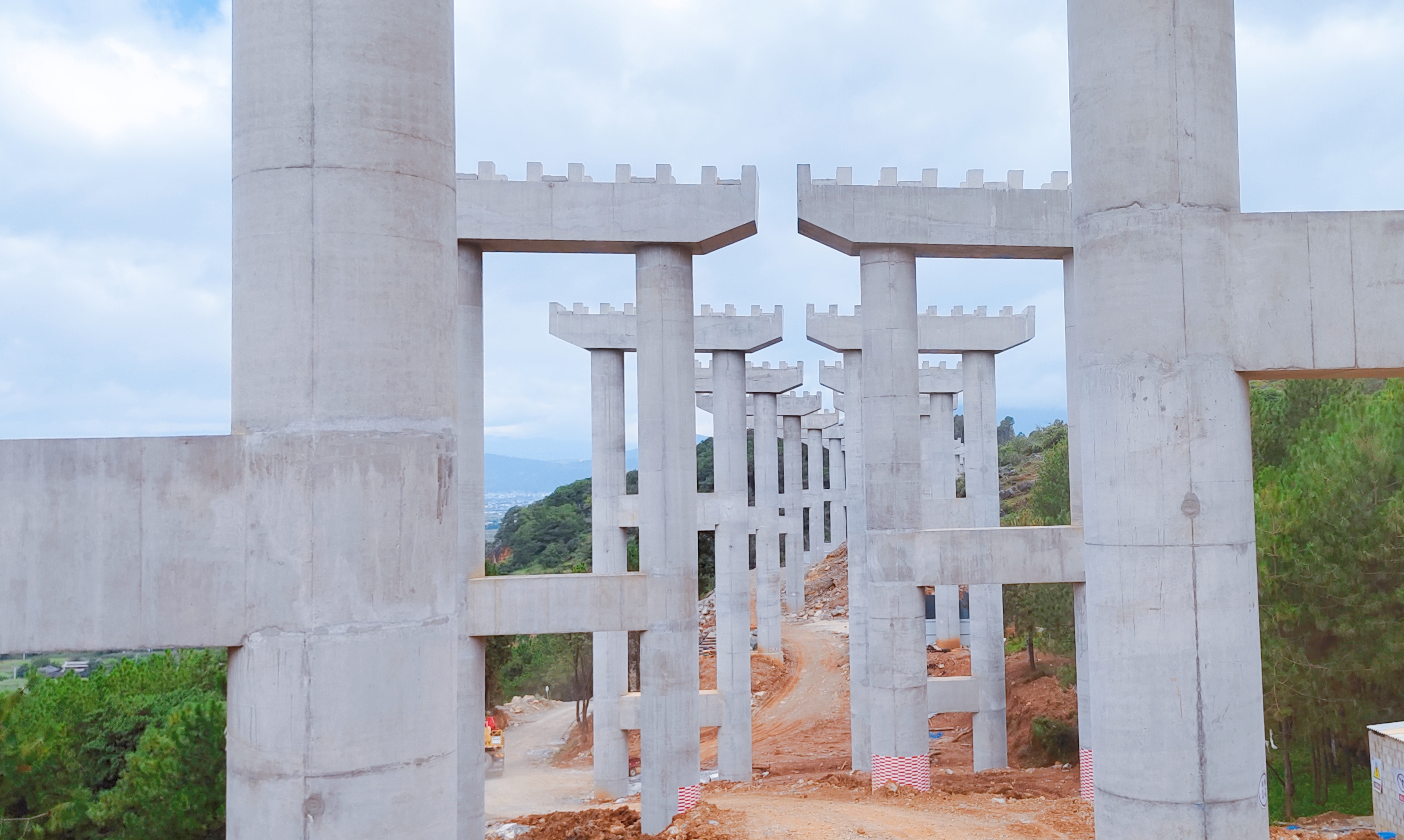 古寧高速土建四分部承建標(biāo)段全長(zhǎng)8.3km,包括路基、橋梁、隧道等,其中美自欄2號(hào)橋全長(zhǎng)556.08m,為預(yù)應(yīng)力T形連續(xù)梁橋,橋墩采用雙柱墩,鉆孔灌注樁基礎(chǔ),設(shè)計(jì)樁基80棵,設(shè)計(jì)圓形墩柱70棵,最高墩柱高38m,設(shè)計(jì)預(yù)應(yīng)力T梁190片。