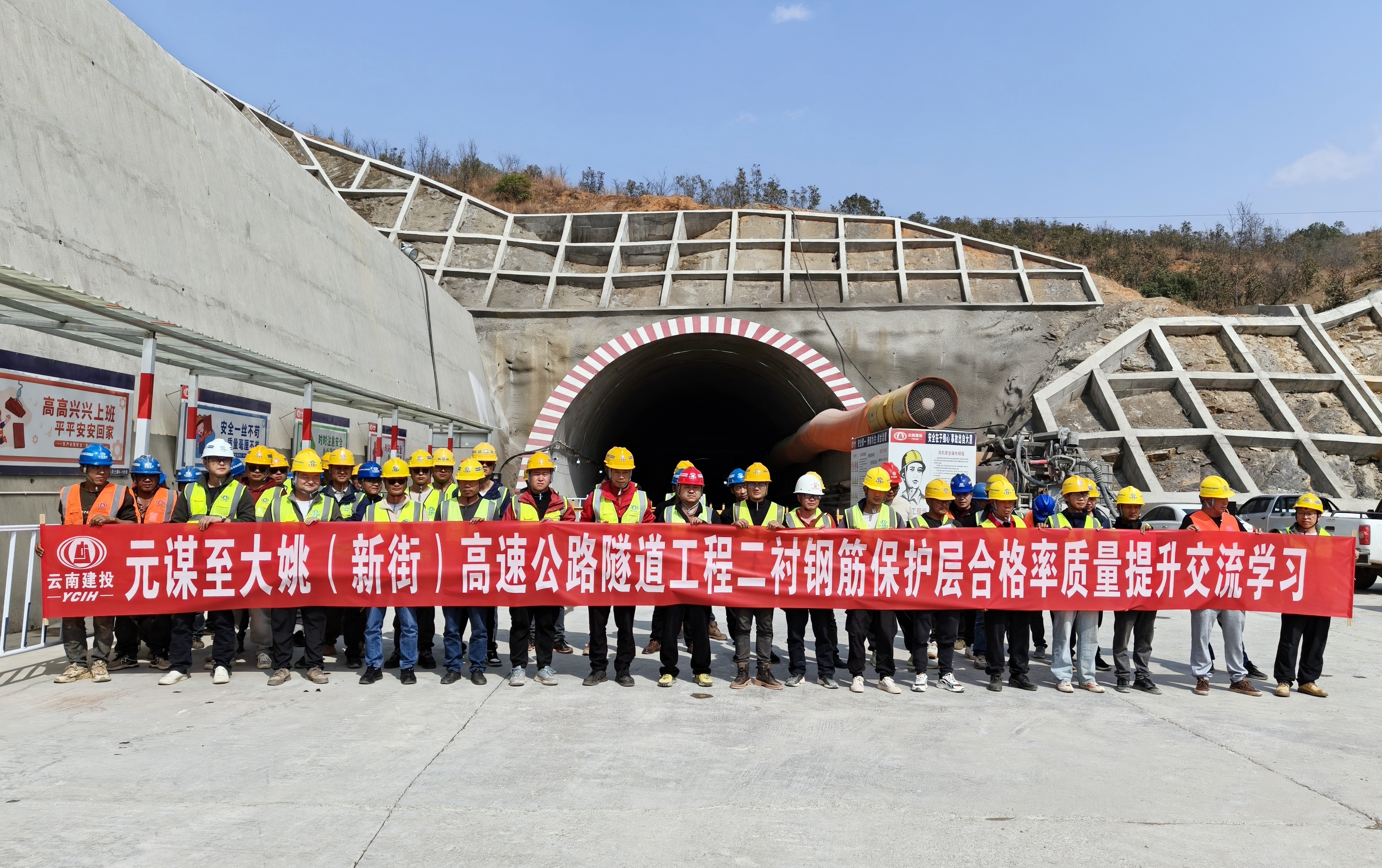 3月21日下午,元大高速總承包項目部組織隧道各施工分部的技術、質量負責人和隧道班組到公司承建的元大高速土建4-1分部新華隧道參觀,就二次襯砌鋼筋保護層合格率控制展開交流,共計40人參加。